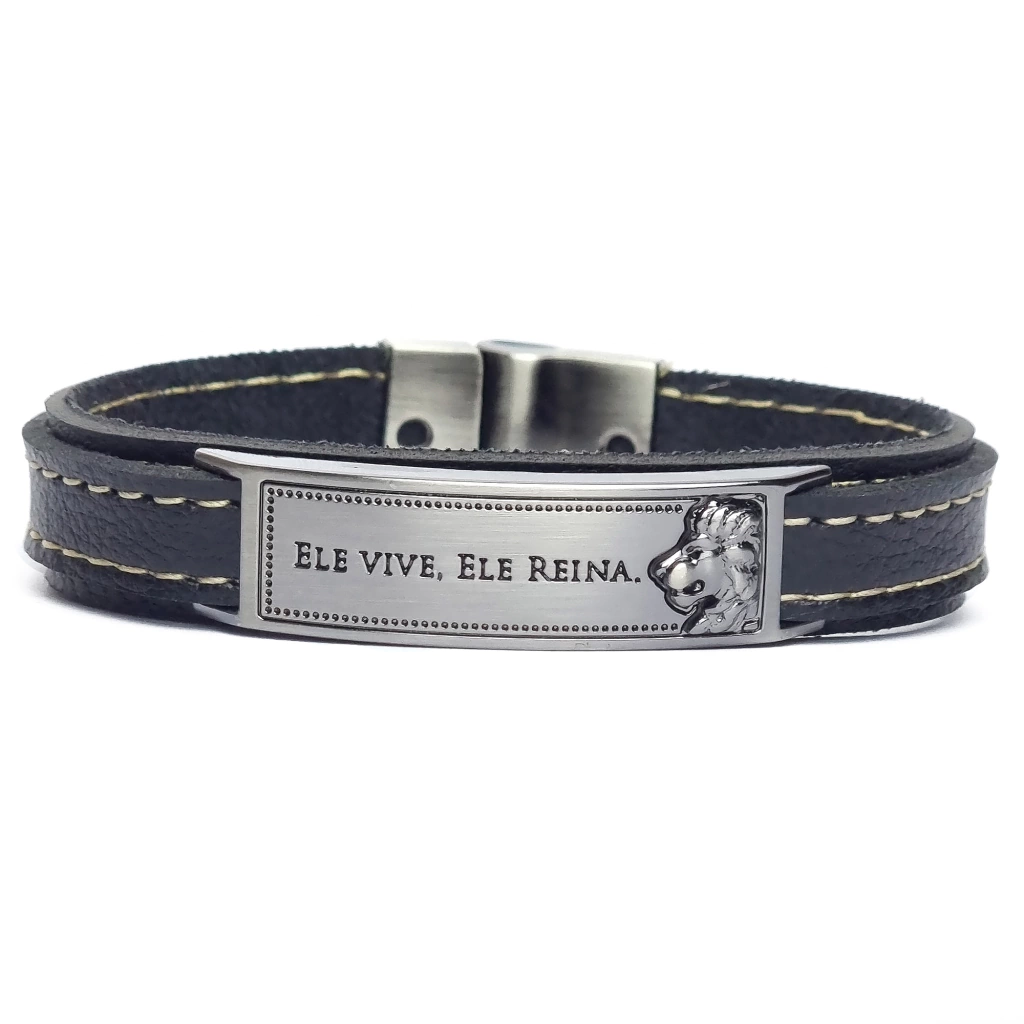 As pulseiras são feitas com couro sintético na cor preta. Os detalhes e os pingentes são feitos de metal zamac, é uma liga composta de zinco com alumínio, magnésio e cobre. Tem dureza, alta resistência à corrosão e ao desgaste! Acabamento reforçado para melhor durabilidade.
